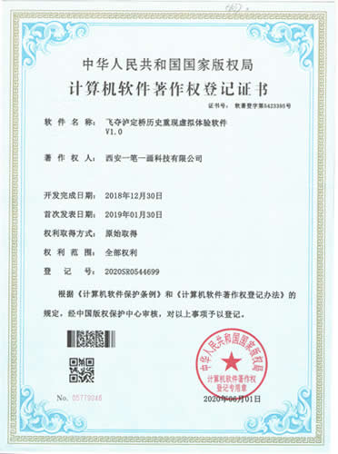 西安一筆一畫科技有限公司擁有《3C管理體系認(rèn)證》|《3A信用等級》|《展館雙甲資質(zhì)》《招投標(biāo)證件》|《展覽業(yè)10大影響力品牌》|《環(huán)藝雙甲資質(zhì)》|《禁毒教育拒毒心理測試系統(tǒng)軟著》|《飛奪瀘定橋歷史重現(xiàn)虛擬體驗(yàn)軟件軟著》|《禁毒教育世界毒情3D演示系統(tǒng)軟著》等等,是您可以信賴的展廳教育基地設(shè)計施工企業(yè)!